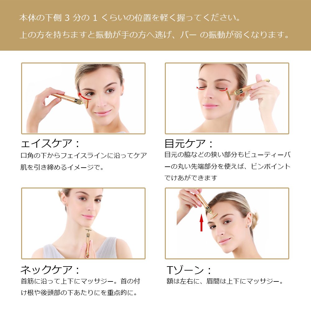 Please lightly hit the head of the bar to the same part where you massage with your fingers, slowly move it from the inside to the outside from the bottom.