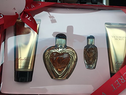 -. Binding : Misc. -. Brand : Victoria's Secret -. Feature : Victoria's Secret Rapture 4 Piece Gift Set Box / Eau de Parfum: 50 ml/1.7 fl. oz / Mini Eau de Parfum: 7.5 ml/.25 fl. oz / Fragrance Lotion: 100 ml/3.4 oz / Fragrance Wash: 100 ml/3.4 fl. oz -. IsAdultProduct : 0 -. Label : Victoria secret -. Manufacturer : Victoria secret -. Model : 644448-601 -. PackageQuantity : 1 -. ProductGroup : Beauty -. ProductTypeName : BEAUTY -. Publisher : Victoria secret -. Studio : Victoria secret -. Title : RAPTURE GIFT SET BY VICTORIA SECRET (1.7 oz perfume - 3.4 oz wash and lotion and purse size rapture perfume)
