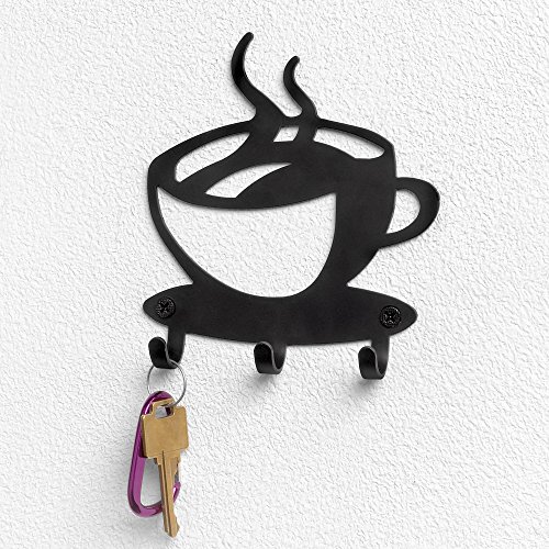 A GREAT ADDITION TO YOUR HOME DÉCOR: Imagine walking through your front door and having a totally unique place to always hang your keys. Then you'll instantly love the way this unique coffee & tea inspired home accessory looks in your entryway, hallway, office or kitchen. With 3 hooks its the perfect size that's just right, and the best part is that the black steel finish simply looks amazing!