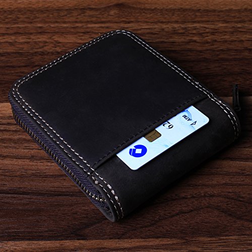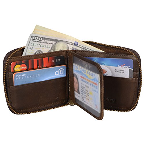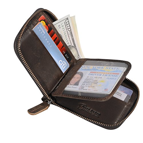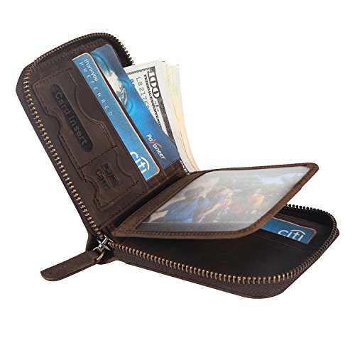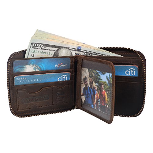 -. Feature : Zips all around for security. / Designed to hold cash,cards and other little things; you can simply hold it on hand or put it in bag. / Measurement approx: 4.52 * 3.93 * 0.79inches (11.5*10*2cm). / Capacity:9 card slots,1 zipper coin pocket,3 hidden pockets,2 large compartment for cash and 1 Photo Window. / Perfect gift for your family,father or boyfriend and it will meet their daily use. Gift Box Included!
