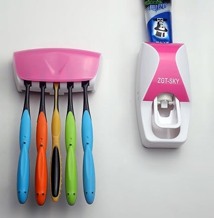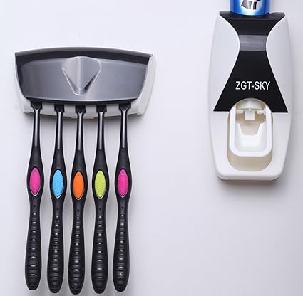 [Product Information]- MULTIFUNCTIONS- This creative automatic toothpaste dispenser is made up of toothbrush holder, toothpaste squeezer pump. It's great for kids bathroom to keep toothbrushes off counter and reduce toothpaste mess.