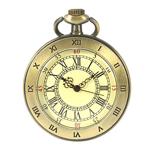-. Title : SIBOSUN Men Pocket Watch Open Face Antique Quartz Bronze Chain Roman Numerals Arabic Numerals