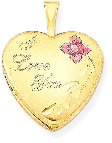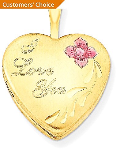 ICECARATS DESIGNER JEWELRY 1/20 GOLD FILLED 16MM ENAMELED FLOWER I LOVE YOU HEART PHOTO PENDANT CHARM LOCKET CHAIN NECKLACE THAT HOLDS PICTURES
