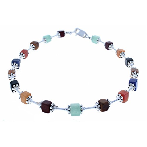 -. Title : Ladies Aventurine, Jasper, Sodalite, Carnelian, Tiger Eye & Sterling Silver Anklet with Daisies
