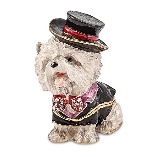 Bejeweled Dressed Up Bichon Dog Trinket Box