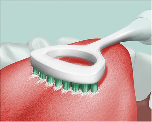 With tongue cleaning brush to remove the tongue cloth causing bad breath.