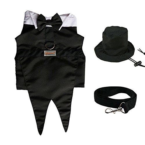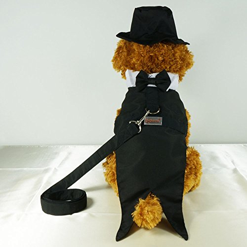 Features: This well tailored and fully lined formal tuxedo includes black top hat & leash, the black top hat has elastic string to hold it in place, the D-ring on the tuxedo for leashes when your dog need to walk.