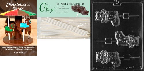 Cybrtrayd 'Baby's First Christmas Lolly' Christmas Chocolate Candy Mold with 25 4.5-Inch Lollipop Sticks and Chocolatier's Guide