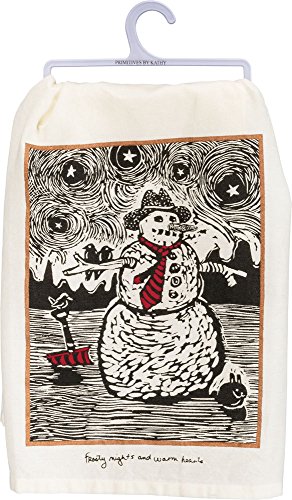 Primitives By Kathy Dish Towel - Frosty Nights And Warm Hearts Snowman
