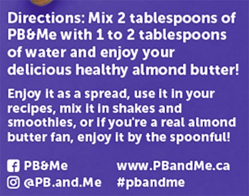 Studio : Sahah Naturals Publisher : Sahah Naturals Binding : Grocery Product Description Introducing the first Powdered Almond Butter. PBMe Almond is an all-natural, low calorie Powdered Almond Butter. Similar to Powdered Peanut Butter, our Almonds are pressed to remove the oil, leaving behind a light gluten free flour that is high in protein, and has 90% less calories from fat than traditional almond spreads. With only 50 calories and upwards of 6g of protein per serving, you can enjoy PBMe Almond in your shakes and smoothies, as a delicious almond spread, as a gluten-free baking flour or if you're a real Almond Butter fan, enjoy it by the spoonful! 0
