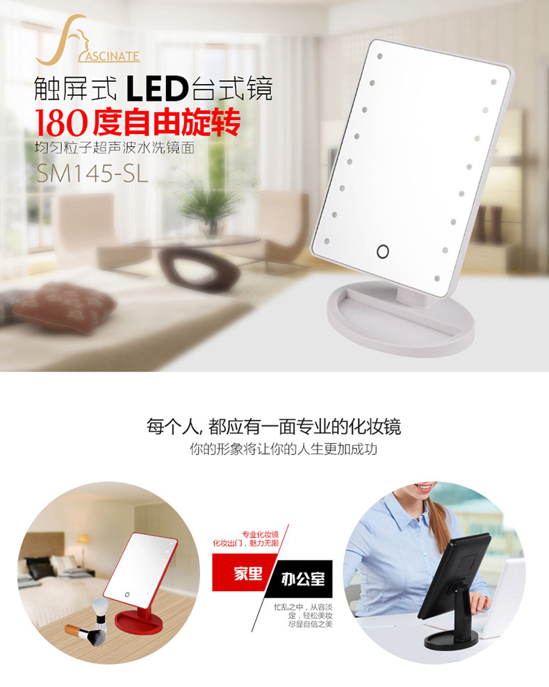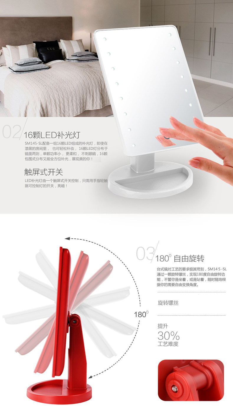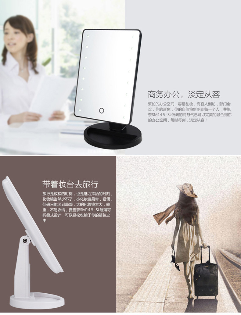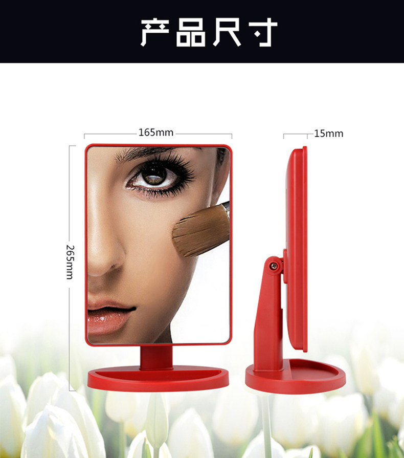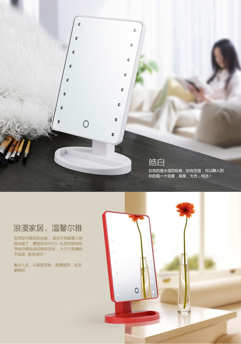 斐色耐led台式化妆镜子方形大号发光镜子美妆公主镜送人礼品镜