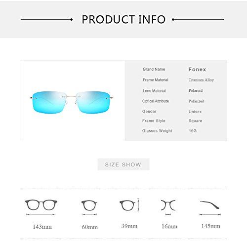 (FONEX)/Accessories/Eyewear/DIRECT FROM USA/FONEX Men Screwless Titanium Alloy Polarized Sunglasses Women Square Sun Glasses 8203
