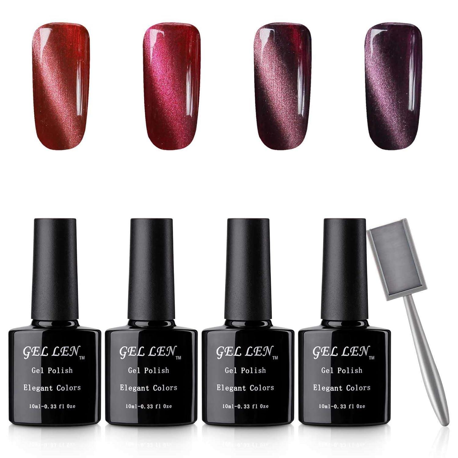 内容量:10ml×4 商品サイズ(幅×奥行×高さ):3.2×2×7cm 磁石を近づけるだけで手描きでは表せないキャッツアイ(猫の目)効果を現せる3Dマグネットジェルです!大人の魅力が一気にUP! キャッツアイ効果を作り出すために必要な専用マグネットプレートを1本プレゼント! 扱いやすい粘度で初心者の方でも手軽にサロン級の仕上がりにできる!