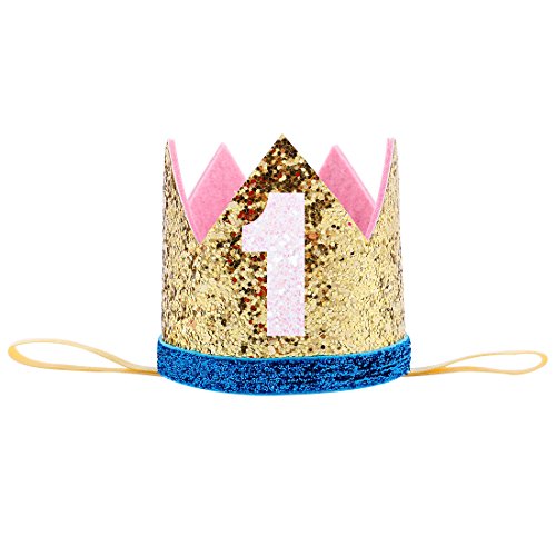 | Floral Fall Baby Girl and Boy 1st Birthday Hat Photo Prop Sparkly Gold Crown Elastic Headbands HG-05 |