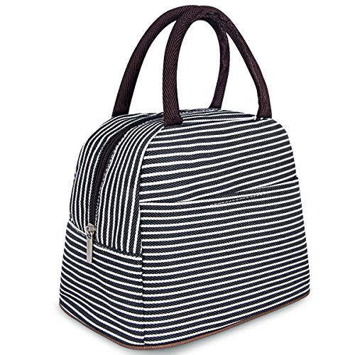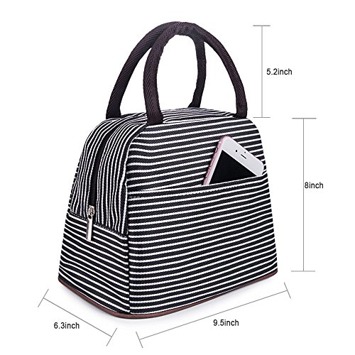 Bag is reusable and lets you easily commute with your lunch saving you money and keeping you healthy.Do not use rubber bottom, the lunch bag is safe and environmental. The flat bottom keeps it upright, perfect for bottles or dishes that you carefully prepared.Simple and stylish stripes design, it’s suitable for both men and women.