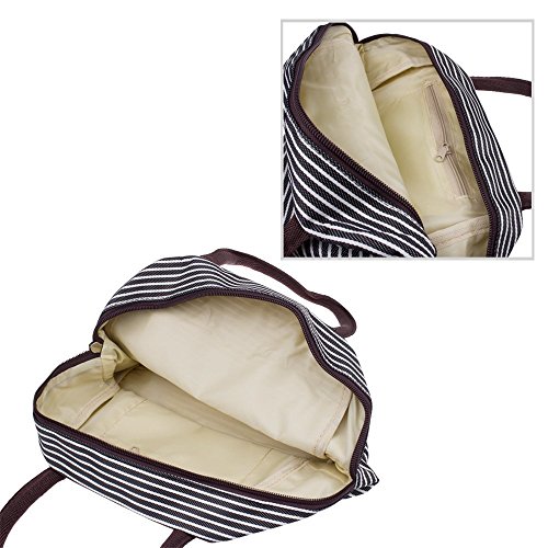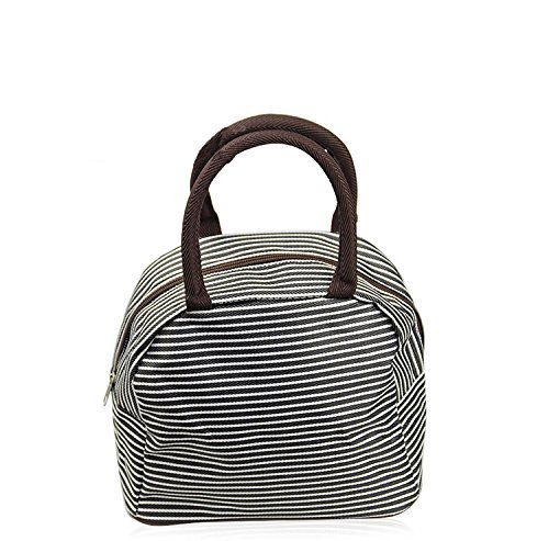 Yansanido Waterproof Useful Cute stripe Lunch Bag Tote Bag Grocery Bags with Zipper and Handle Lunch Organizer Holder Container Picnic Box Lady Cosmetic Bag Travel Satchel Handbag (Linen Stripe Brown)