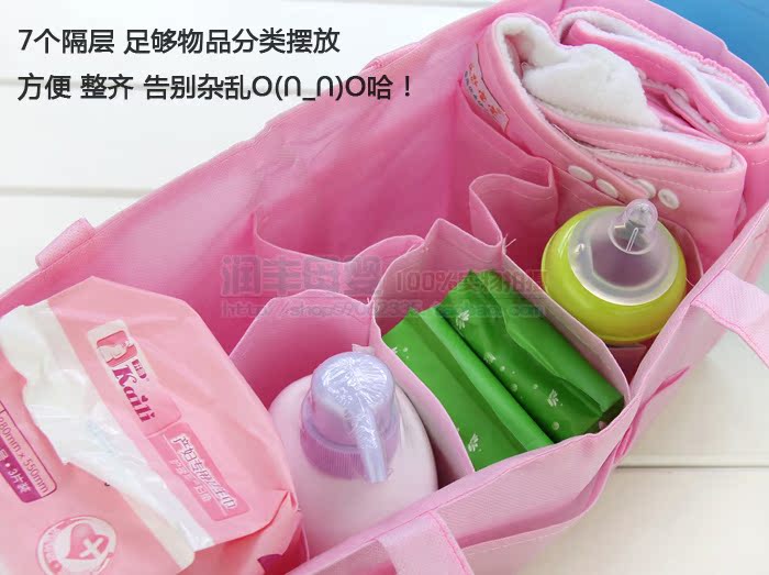 【功能】:用于放在妈咪包里,把奶瓶、尿片、毛巾等等分隔清晰,东西不凌乱,可拆卸可手洗的内胆。方便妈咪们马上能拿出想要的东西。