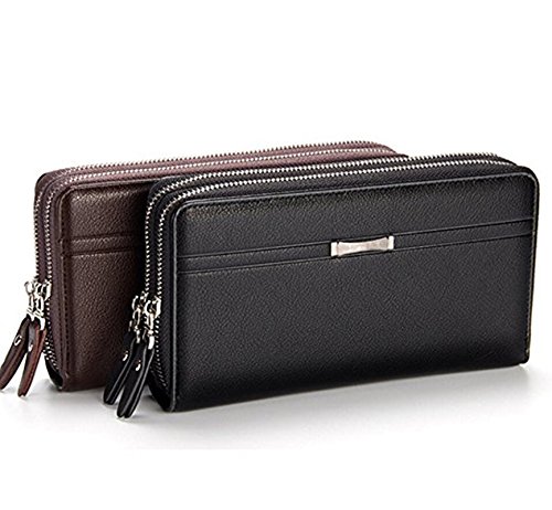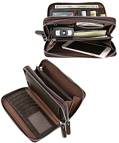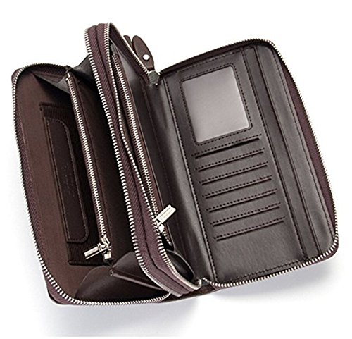 -. Title : WIN Mens Leather Wallet,Zip Clutch Long Wallet Purse Credit Card Holder