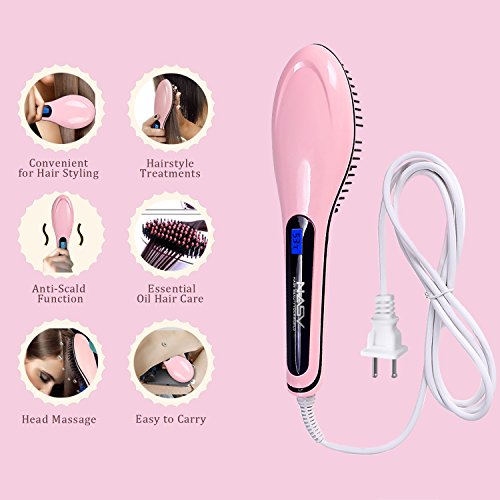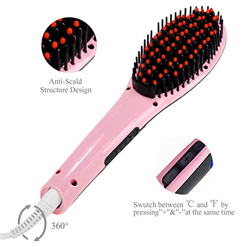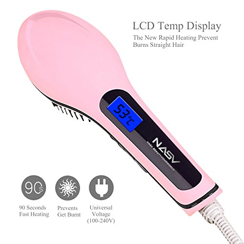 Controllable Temperatures: Dual voltage operation support: 110V~240V. Hair straightener brush temperature will be displayed on the LED screen. The adjustable heat temperatures allow you to match your specific hair type