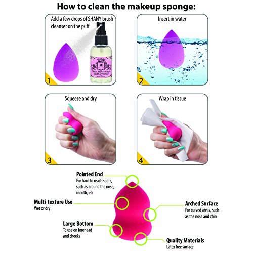 -. Feature : The silky Anti-Microbial latex-free material ensures that these blending sponges won't irritate your skin, no matter how often you use them. / SHANY blenders do not retain excess water, absorb less products, double in size when wet and full set of SHANY Blender cost less than one blender from ordinary brands. / The bright assortment of colors helps with organizing your reusable sponges and keeping track of their cleaning routines . / Sponges can be used for a range of products, including the application of makeup foundation, Cream Contour Kit, concealer, loose powder, cream blushes, and shadows. / SHANY Cosmetics is a proud member of PETA and all of our products are 100% cruelty-free. This set was designed in the U.S.A.