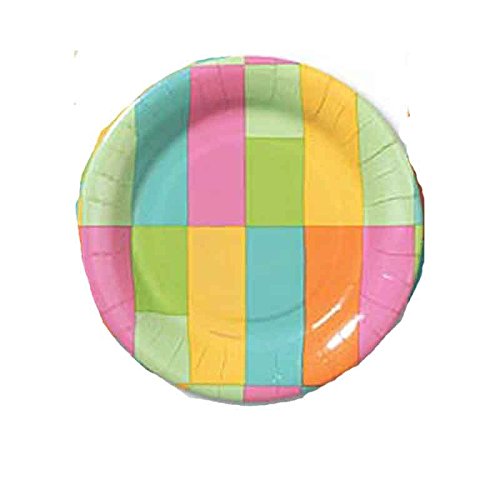 Design Design Fuchsia Yellow Orange Turquoise Blocks Dinner Paper Plates