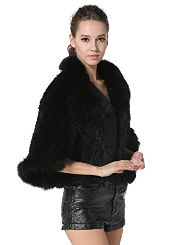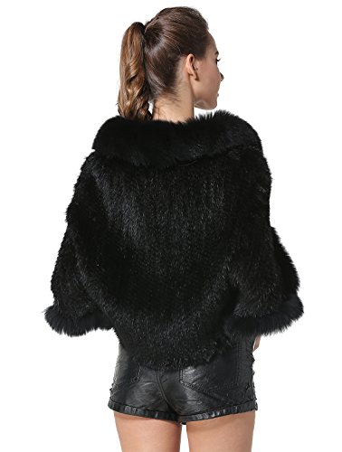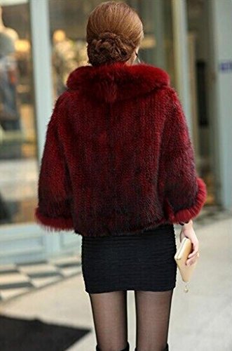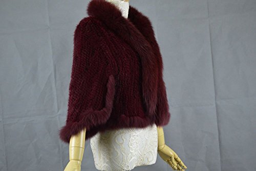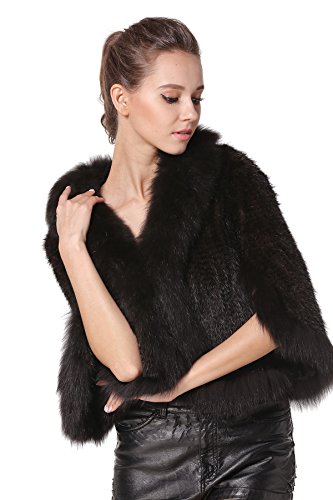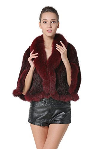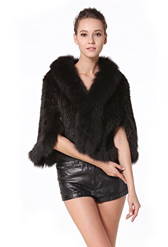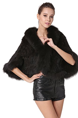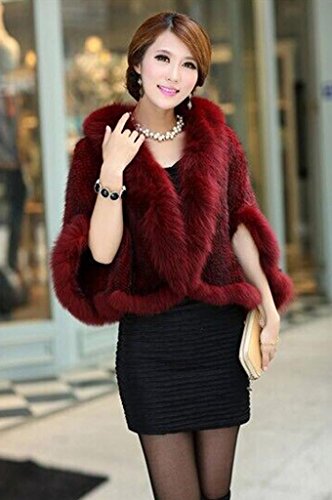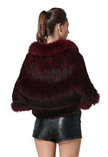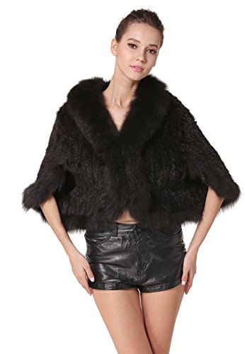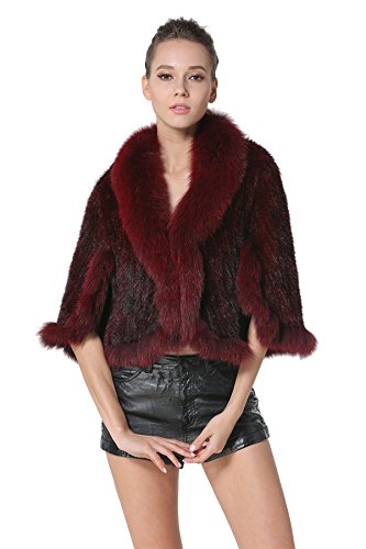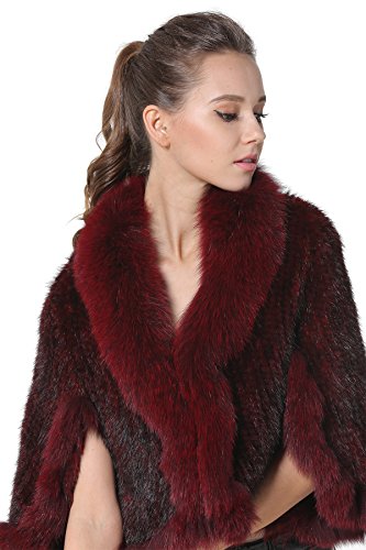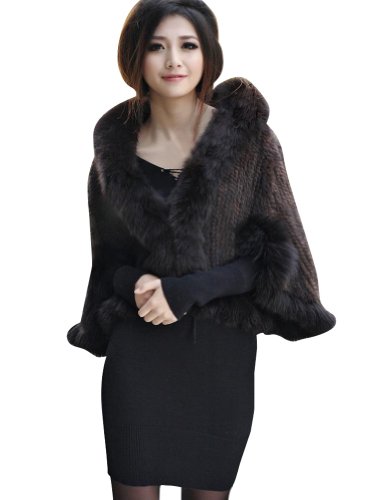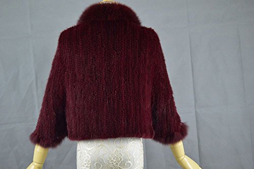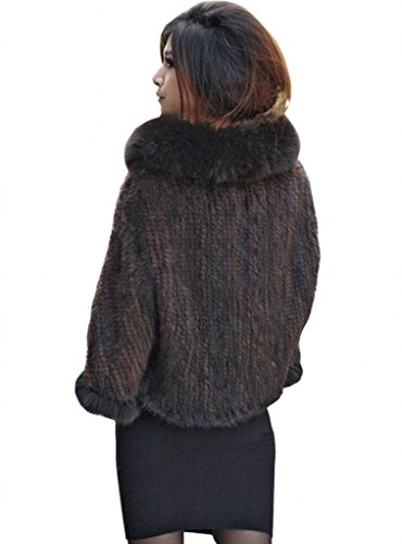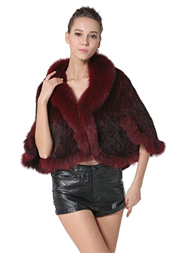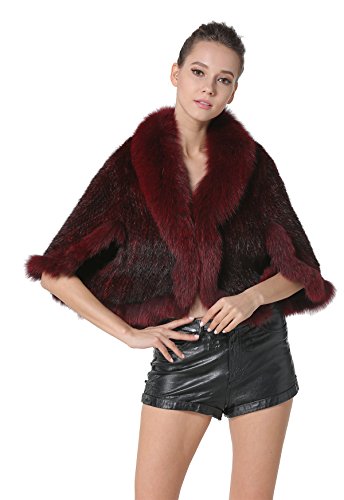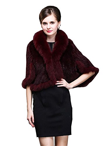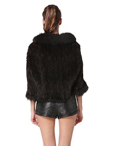 | Bafei Women's Natural Mink Fur Knitted Cappa with Fox Fur Collar |