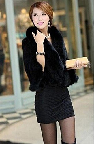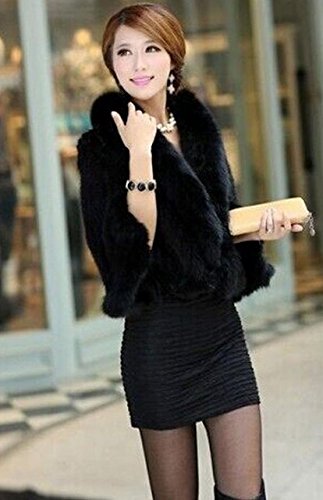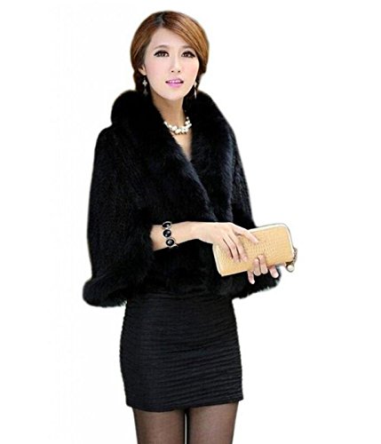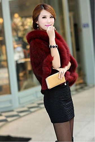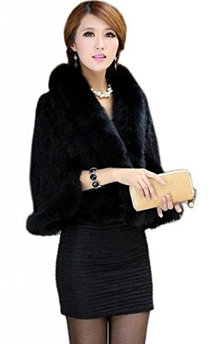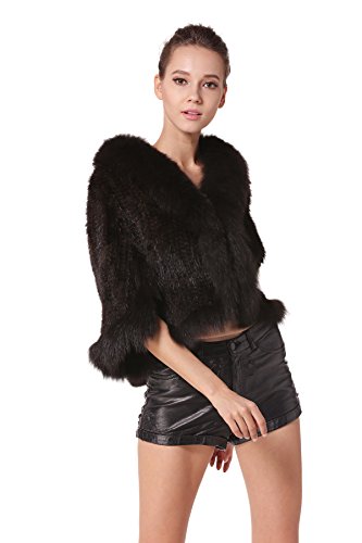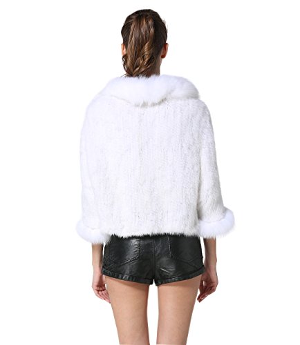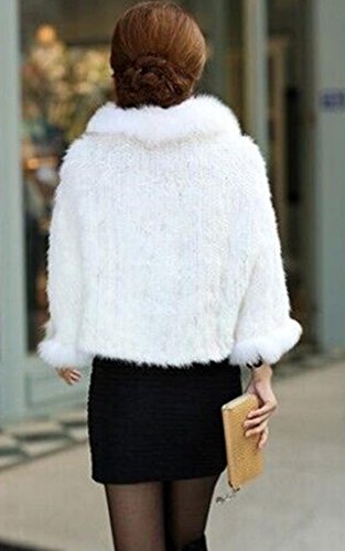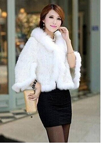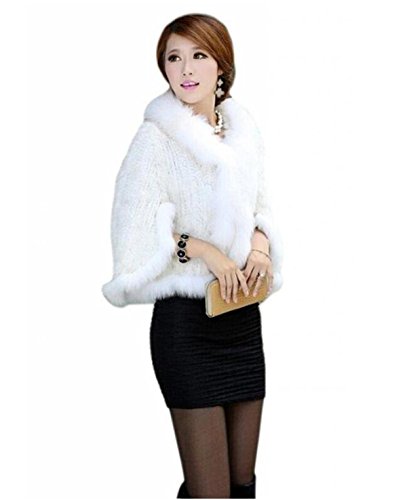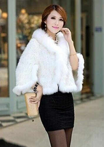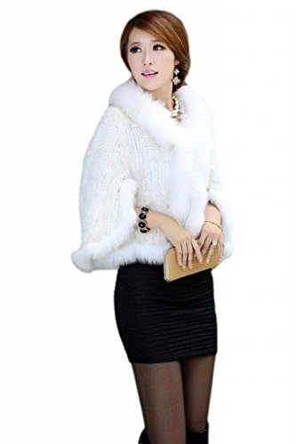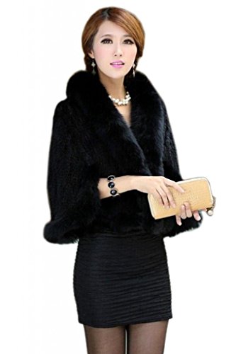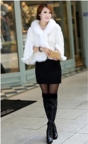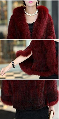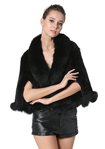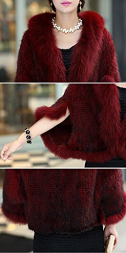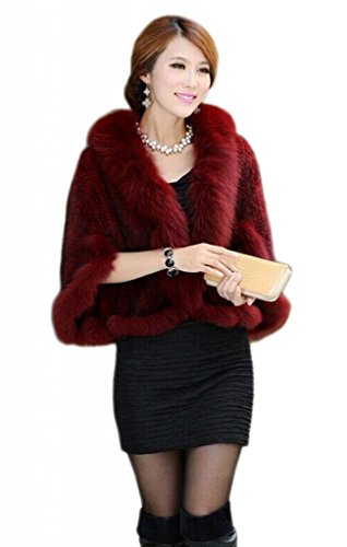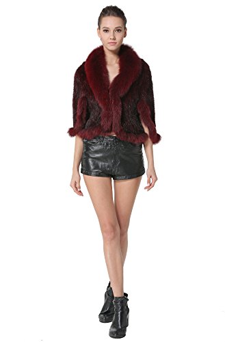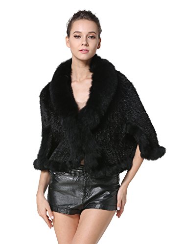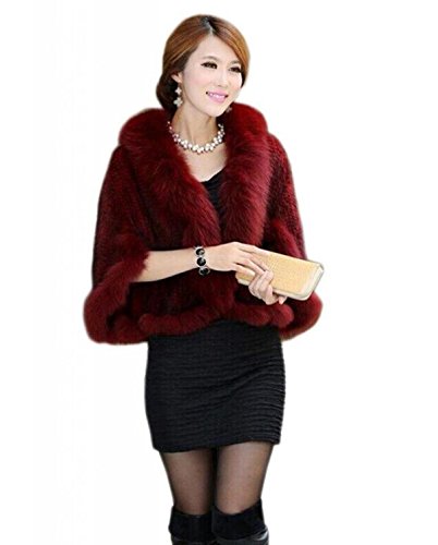 | Bafei Women's Natural Mink Fur Knitted Cappa with Fox Fur Collar |