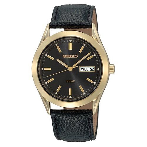 Seiko Men''s SNE054 Solar Strap Black Dial Watch