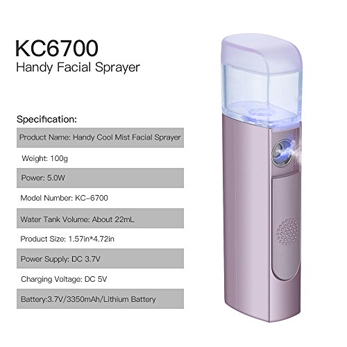 ☆Multifunctional facial sprayer: KingdomCares Handy Cool Mist Facial Sprayer is a perfect combination for facial sprayer and power bank. Nano Ultrasonic technology splits water molecules into tiny nanometer particles to make the effective component penetrate into the depth of skin by atomization processing. Cool mist moistens and soothes skin instantly, leaving skin smooth and hydrating. Relieve dryness due to air conditioned or dry environment.