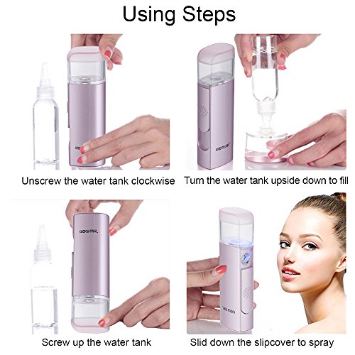 ☆Nano Ionic Technology and Stop Automatically: High quality heating element with ultrasonic vaporizer produces nano steam with negatively charged ionic particles, relaxing and softening skin and moisturize deeply to help skin cool down and recover to normal. Sliding down the slip cover gently and micro-sized particles stream will be released immediately for skin care. It will stop in 60 seconds automatically, enabling skin to get sustainable moisture replenishment.