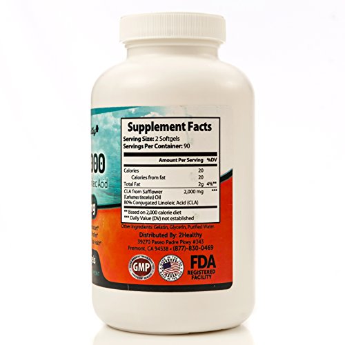 -. Binding : Health and Beauty -. Brand : 2Healthy -. EAN : 0630900461634 -. Feature : Combining CLA with a balanced diet and exercise, 2Healthy CLA 2000 is an excellent non-stimulating addition to your weight loss regime. / No Jittery Side Effects - Healthy weight managemt, with no unsafe or stimulating ingredients like caffeine. Derived from Non-GMO Safflower. / Great Natural Weight Loss Formula - Our high potency weight loss supplement is made with 100% premium and natural ingredients. / Great Value - 180 softgels of 1000mg of 80% CLA - 2 softgels per serving making it 90 days wroth of supply! / Unhappy with your 2Healthy CLA 2000 purchase? Message us first through Amazon's Buyer Messages! -. IsAdultProduct : 0 -. Label : 2Healthy -. Manufacturer : 2Healthy -. MPN : 2H-CLA-180 -. PackageQuantity : 1 -. PartNumber : 2H-CLA-180 -. ProductGroup : Health and Beauty -. ProductTypeName : HEALTH_PERSONAL_CARE -. Publisher : 2Healthy -. Studio : 2Healthy -. Title : CLA 2000 Pure Safflower Oil Supplement - 3 Month Supply (180 Softgels), Natural Conjugated Linoleic Acid, Weight Management Pills, 2000mg Per Serving -. UPC : 630900461634