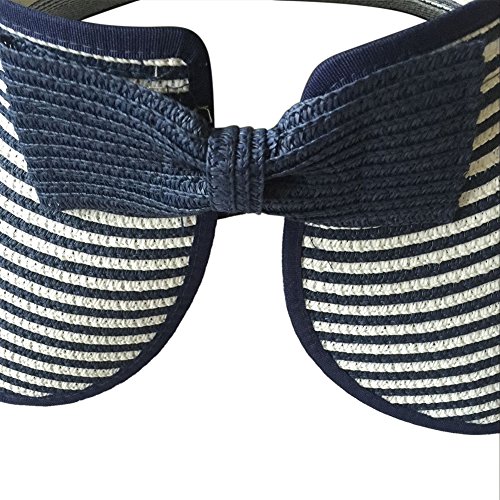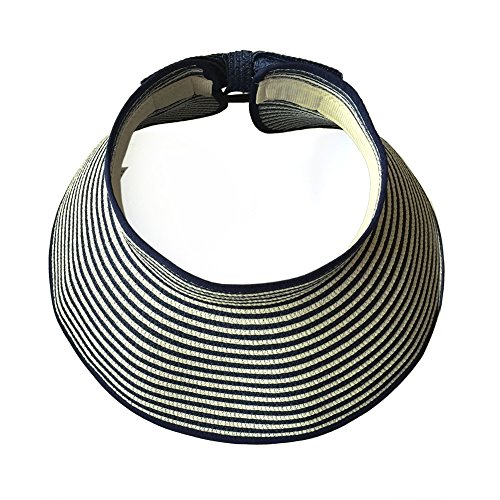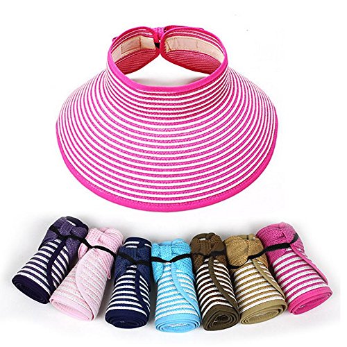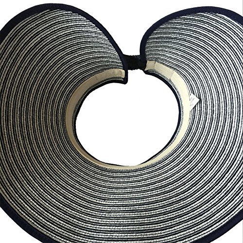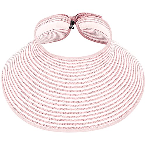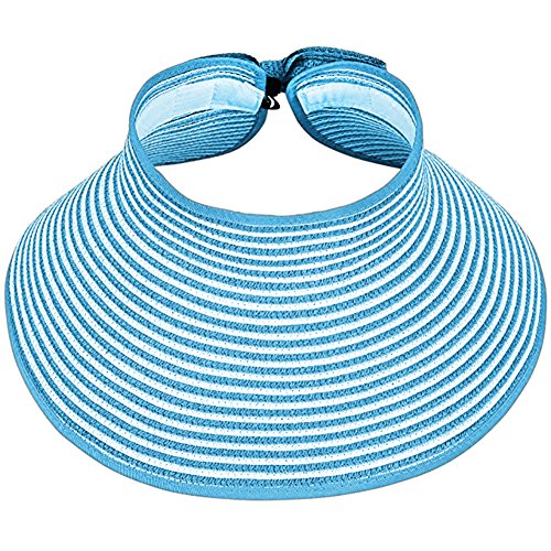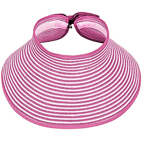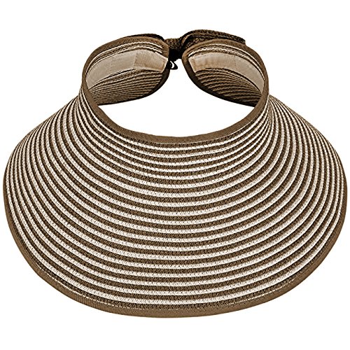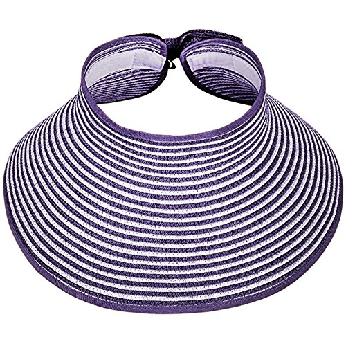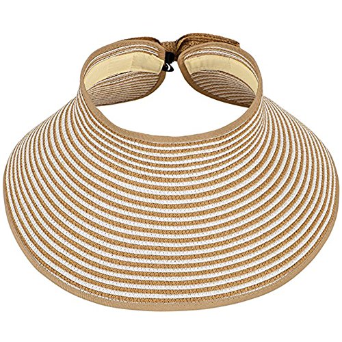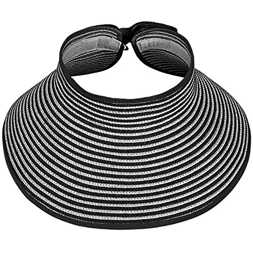 | Opromo Women's Roll Up Foldable Hat Striped Wide Brim Straw Sun Visor Cap |