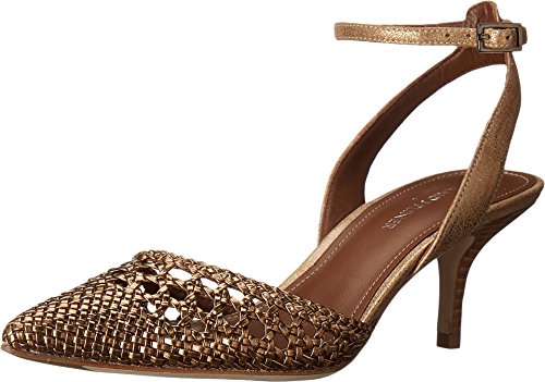 Binding : Apparel Product Description Keep everyone guessing with the tasteful Fresia pump. Leather and synthetic blend upper. Adjustable buckle closure at ankle. Pointed toe. Man-made lining. Lightly-padded footbed. Stacked heel. Rubber and leather outsole. Imported. Measurements: Heel Height: 2 3?4 in Weight: 7 oz Product measurements were taken using size 7.5, width M. Please note that measurements may vary by size. 0