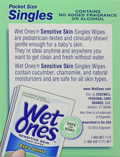 WET ONES Sensitive Skin Hand Wipes, Singles Extra Gentle Fragrance & Alcohol Free 24 ea ( Pack of 5)