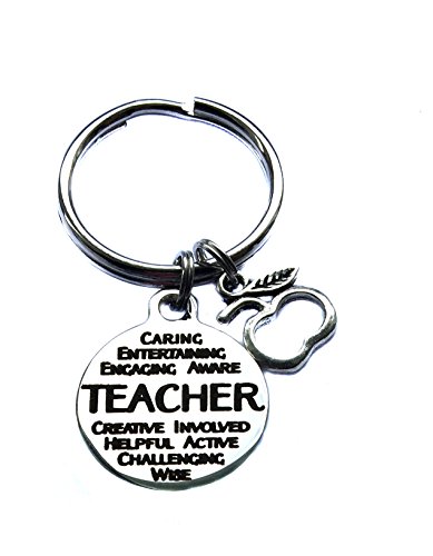Studio : Heart Projects Publisher : Heart Projects Binding : Jewelry Product Description Keychain made with a stainless steel 3/4" x 7/8" or 19mm x 22mm "Teacher: caring, entertaining, engaging, aware, creative, involved, helpful, active, challenging, wise" circle charm and a small antique silver apple charm. Makes a great gift for any teacher! 0