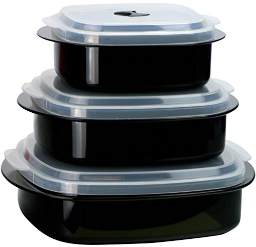 Reston Lloyd is a leading manufacturer and distributor of kitchenware, specializing in enamel on steel products. For nearly 30 years, they have been dedicated to providing the highest quality products, with an equal emphasis on superior customer service. Reston Lloyd provides a wide variety of household goods that coordinate with patterns of popular dinnerware manufacturers. Reston Lloyd's Calypso Basic line was created to make their everyday useful kitchenwares, into fun and bright colors. Reston Lloyd brought bright colors onto the market over 40 years ago and continues to add new colors. Reston Lloyd only uses the current trending colors to ensure you are offered the best coordinating houseware items. While some colors are replaced by others from year to year, one thing remains the same, which is variety. Reston Lloyd is one of the only manufacturers who have over 12 standard colors at one time. Calypso Basics includes items such as enamel on steel or powdered coated colanders in FIVE sizes! The collection also contains, batter bowls, microwave cookware set, enamel cookware, acrylic storage, melamine utensil, and more! Start collecting your favorite color today and see what a little color can do for you. The 6-piece microwave cookware set allows you to prepare a meal from freezer to microwave to dishwasher using only one container. Cook a meal, store the left overs or use as a lunch container. Each set comes with 3 containers with a clear lid that features an adjustable stem vent. Each set nests together with the lids to minimalize storage space. BPA free. Bowls measure: 16-ounce - 6 1/4"L x 5 1/4"W x 2" H; 28-ounce - 7 1/2"L x 6 1/4"W x 2"H; 40-ounce - 8 1/"L x 7 3/4"W x 2"H. Dishwasher safe. Stain resistant except for highly acidic foods.Feature