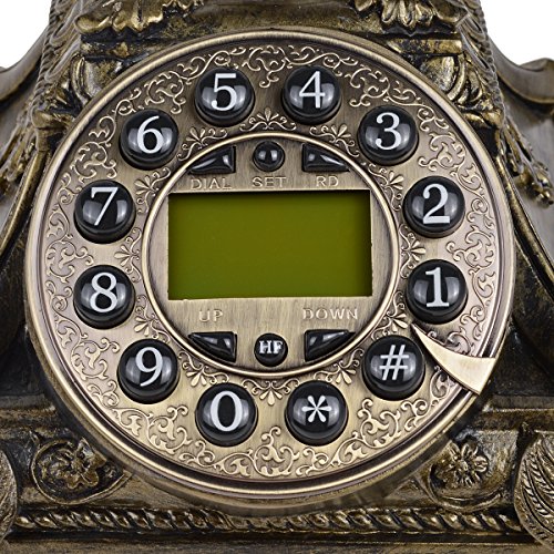 Kmise 117A Bronze Retro Vintage Antique Style Rotary Dial Desk Telephone Phone Home Living Room Decor