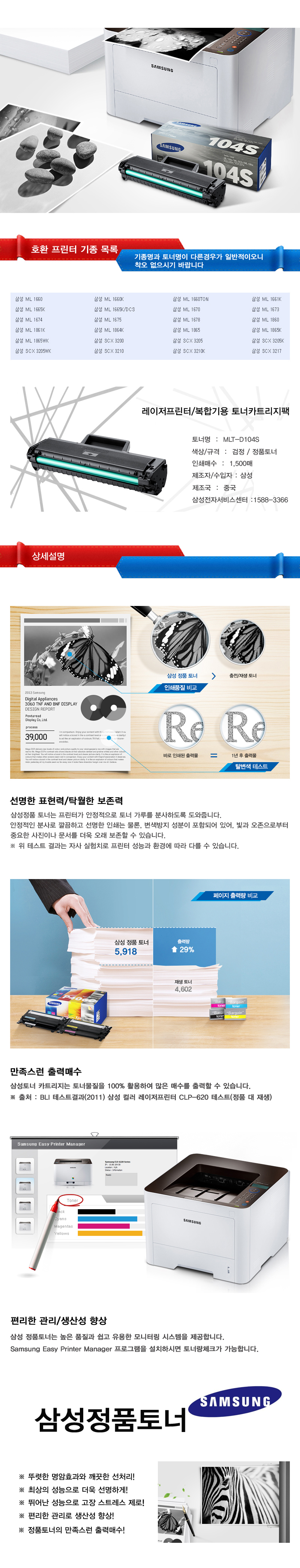 - 품명 및 모델명삼성 ML-1865WK SCX-320 정품토너(S3041)