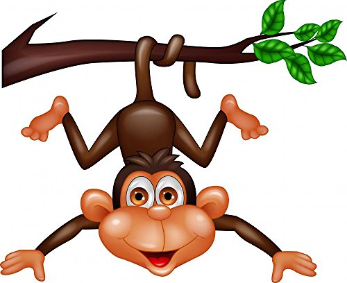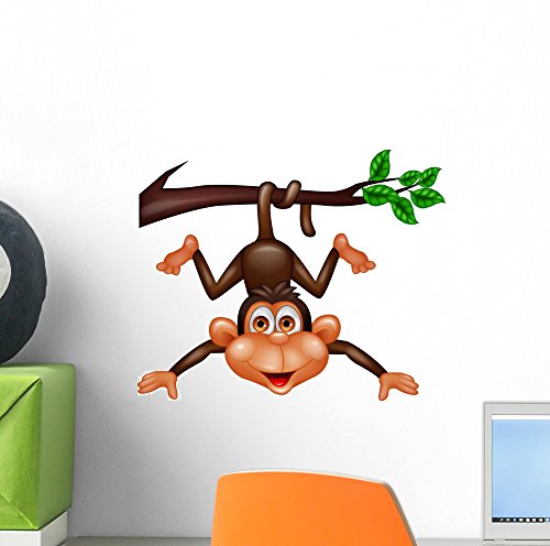 Wallmonkeys WM255341 Funny Monkey Hanging on Tree Branch Peel and Stick Wall Decals (12 in W x 10 in H)