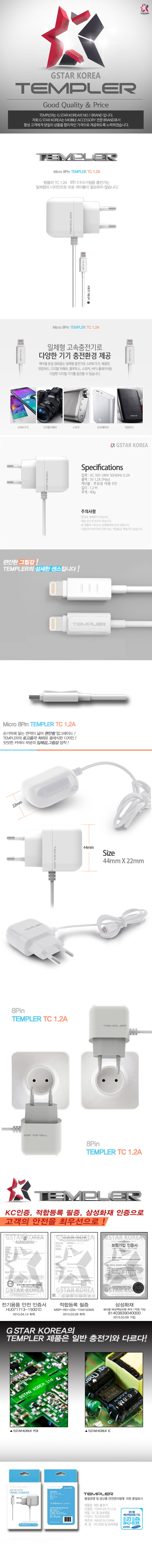 - 품명 및 모델명TEMPLER 안전한 애플 라이트닝8핀 1.2A 충전기