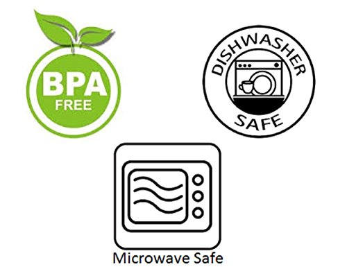 BPA Free. Microwave Safe. Dishwasher Safe. Freezable. Bright Colored Handles, Easy to Carry.