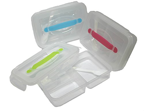 One of the biggest advantages to this bento lunch box is the locking cover. Many times we find ourselves in the unpleasant situation of having to clean up spills and messes because the lunch box isn't sealed well or it just opened. With the four sided locking system on the Fresh To-Go lunch boxes you never have to worry about your lunch ending up in your briefcase. In fact, the lid is so tight it will even hold liquid without any spillage. This peace of mind makes this the lunch box of choice for children of all ages, they can carry it in their briefcase or book bag without worry.