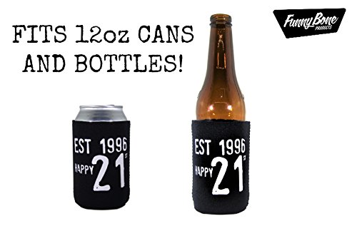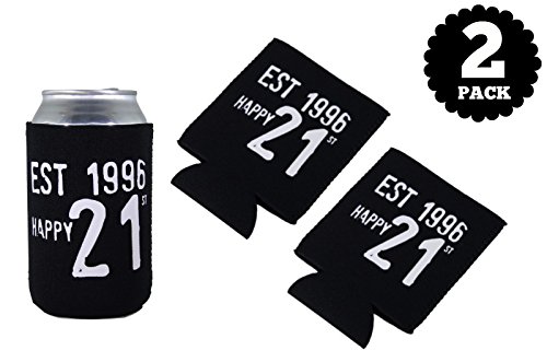 21st Birthday Gift, Insulated Can Bottle Beverage Coolie, Twenty First Birthday Gifts For Him Or Her (Black)
