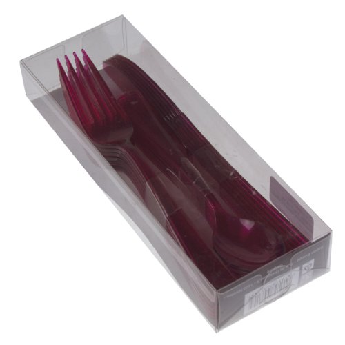 MOZAIK 18 Piece Raspberry Plastic Cutlery Pack (6 Forks 6 Knives 6 Dessert Spoons)