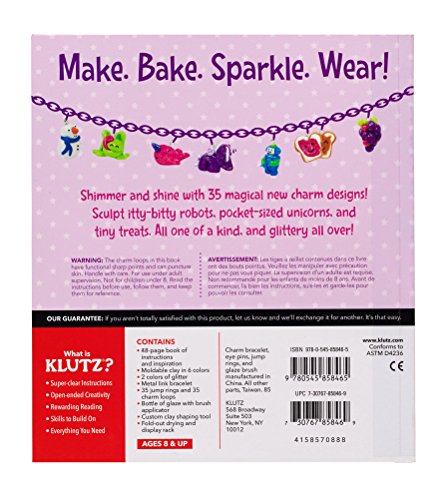 Comes with 48-page book, 6 colors of clay, 2 colors of glitter, charm bracelet, glaze with brush applicator, clay shaping tool, drying rack