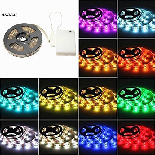 AUDEW 6.6ft RGB 5050 SMD 60 LED Strip Lights with Battery Box Waterproof Craft Hobby Light 14.4W 200cm
