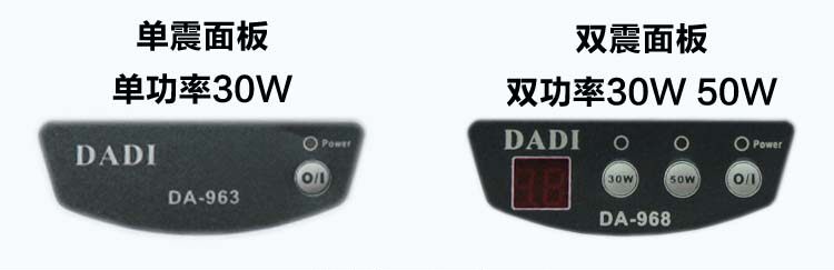 Power: single shock: single power 30W, double shock: 2 power 30W/50W dual power