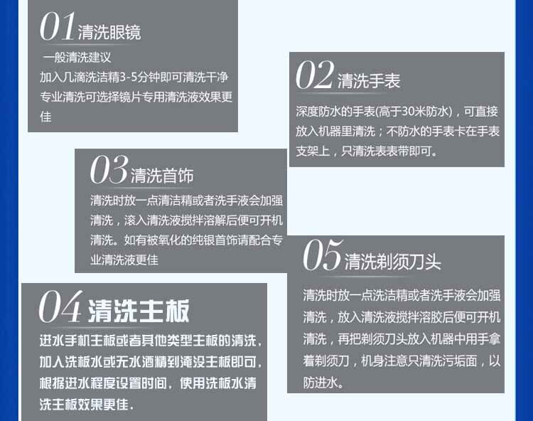 2: Watches, precision instruments, with ultrasonic cleaners, clocks, precision instruments eliminate the need to remove screws, gears, winding springs, watch keys, and other troubles one by one, only need to remove the shell, the entire into the corresponding cleaning agent In the cleaning tank (such as gasoline), you can get a lot of cleaning results.