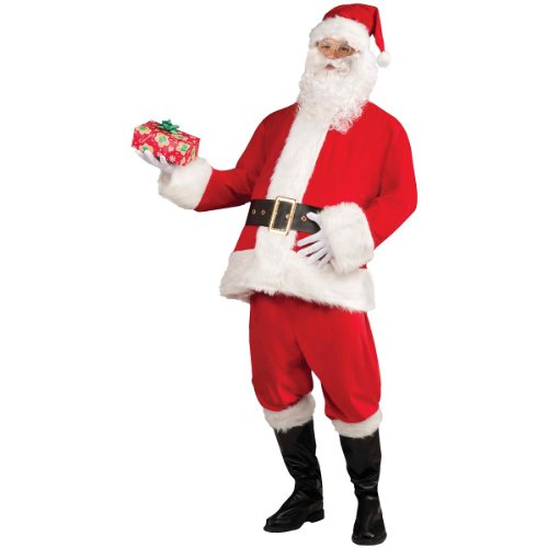 -. Binding : Apparel -. Brand : Forum Novelties -. ClothingSize : Standard -. Color : Red -. Department : mens -. Feature : This deluxe velvet Santa suit includes the jacket, pants, belt, hat and faux fur trimmed boot tops / This classic Santa suit is made from a soft velvet in vibrant Christmas red / Gloves, wig and beard are sold separately; Gift not included -. Genre : Holiday - Christmas -. IsAdultProduct : 0 -. Label : Forum Novelties Costumes -. Manufacturer : Forum Novelties Costumes -. MPN : 65449 -. PackageQuantity : 1 -. PartNumber : 65449 -. ProductGroup : Apparel -. ProductTypeName : ADULT_COSTUME -. Publisher : Forum Novelties Costumes -. Size : Standard -. Studio : Forum Novelties Costumes -. Title : Forum Novelties Men's Santa Claus Costume