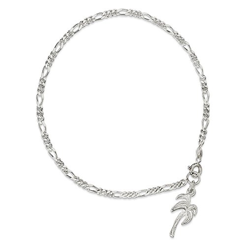 -. Title : Sterling Silver 10inch Solid Polished Palm Tree Anklet 10 Inches